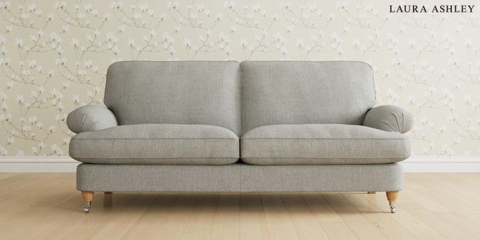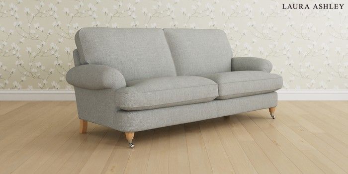 6.12.1 Buy Beaumaris by Laura Ashley 3 Seater Sofa Anneliese Steel Grey Low Chrome Castor - Light Oak from the Laura Ashley online shop Click here to use our website with more accessibility support, for example screen readers