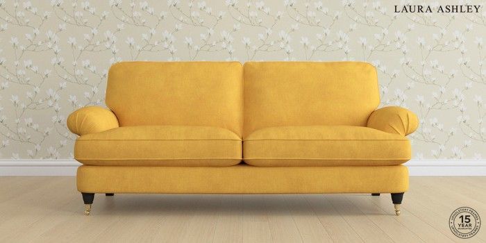 6.12.1 Buy Beaumaris by Laura Ashley 3 Seater Sofa Bainton Ochre Yellow Low Brass Castor - Black from the Laura Ashley online shop Click here to use our website with more accessibility support, for example screen readers