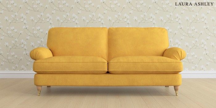 6.12.1 Buy Beaumaris by Laura Ashley 3 Seater Sofa Bainton Ochre Yellow Low Brass Castor - Light Oak from the Laura Ashley online shop Click here to use our website with more accessibility support, for example screen readers