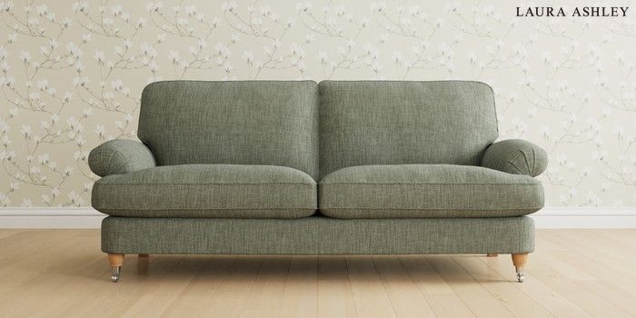 6.12.1 Buy Beaumaris by Laura Ashley 3 Seater Sofa Bainton Sage Green Low Chrome Castor - Light Oak from the Laura Ashley online shop Click here to use our website with more accessibility support, for example screen readers