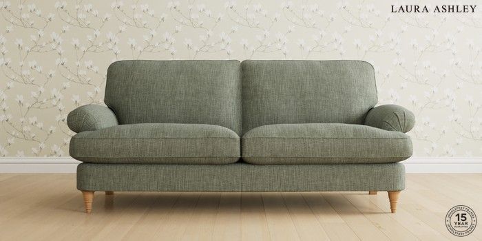 6.12.1 Buy Beaumaris by Laura Ashley 3 Seater Sofa Bainton Sage Green Low Turned - Light Oak from the Laura Ashley online shop Click here to use our website with more accessibility support, for example screen readers