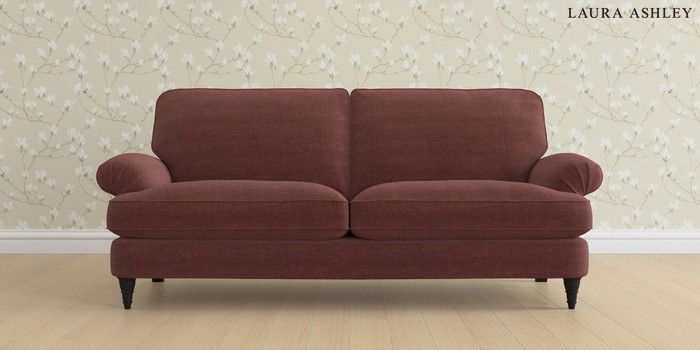 6.12.1 Buy Beaumaris by Laura Ashley 3 Seater Sofa Edwin Chenille Burgundy Red Low Turned - Black from the Laura Ashley online shop Click here to use our website with more accessibility support, for example screen readers