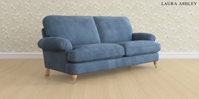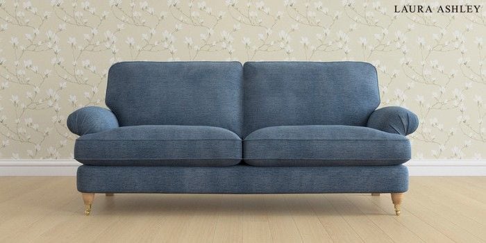 6.12.13 Buy Beaumaris by Laura Ashley 3 Seater Sofa Edwin Chenille Seaspray Blue Low Brass Castor - Light Oak from the Laura Ashley online shop Click here to use our website with more accessibility support, for example screen readers
