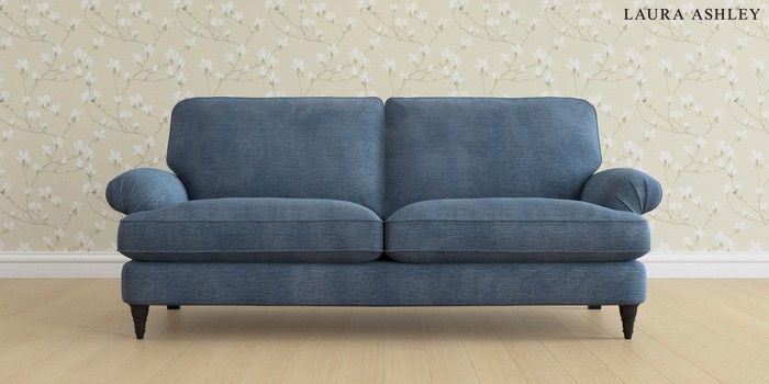 6.12.13 Buy Beaumaris by Laura Ashley 3 Seater Sofa Edwin Chenille Seaspray Blue Low Turned - Black from the Laura Ashley online shop Click here to use our website with more accessibility support, for example screen readers