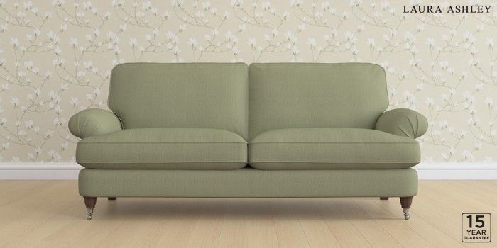 6.12.1 Buy Beaumaris by Laura Ashley 3 Seater Sofa Edwin Herringbone Hedgerow Green Low Chrome Castor - Chestnut from the Laura Ashley online shop Click here to use our website with more accessibility support, for example screen readers