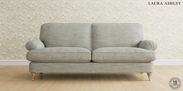 6.12.13 Buy Beaumaris by Laura Ashley 3 Seater Sofa Harley Dove Grey Low Chrome Castor - Light Oak from the Laura Ashley online shop Click here to use our website with more accessibility support, for example screen readers