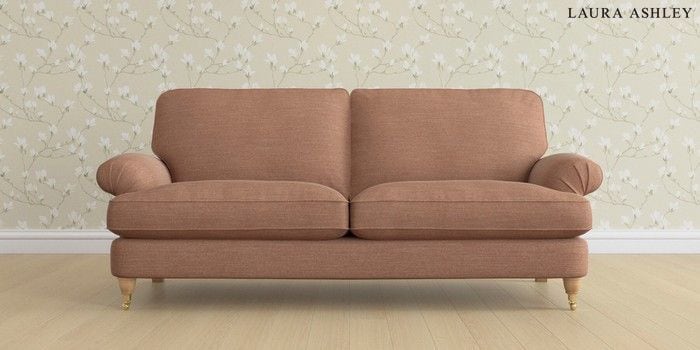 6.12.1 Buy Beaumaris by Laura Ashley 3 Seater Sofa Kinsham Rust Orange Low Brass Castor - Light Oak from the Laura Ashley online shop Click here to use our website with more accessibility support, for example screen readers
