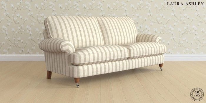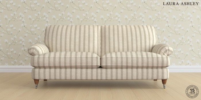 6.12.1 Buy Beaumaris by Laura Ashley 3 Seater Sofa Kinsham Stripe Natural Low Chrome Castor - Teak from the Laura Ashley online shop Click here to use our website with more accessibility support, for example screen readers