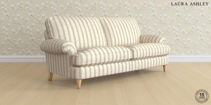6.12.1 Buy Beaumaris by Laura Ashley 3 Seater Sofa Kinsham Stripe Natural Low Turned - Light Oak from the Laura Ashley online shop Click here to use our website with more accessibility support, for example screen readers