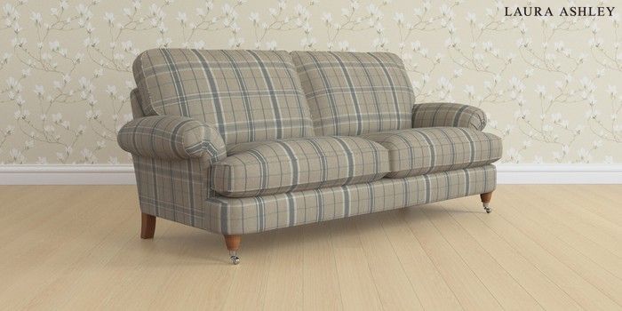 6.12.1 Buy Beaumaris by Laura Ashley 3 Seater Sofa Longstowe Check French Grey Low Chrome Castor - Teak from the Laura Ashley online shop Click here to use our website with more accessibility support, for example screen readers