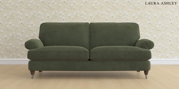 6.12.13 Buy Beaumaris by Laura Ashley 3 Seater Sofa Lundar Chenille Ivy Green Low Chrome Castor - Chestnut from the Laura Ashley online shop Click here to use our website with more accessibility support, for example screen readers