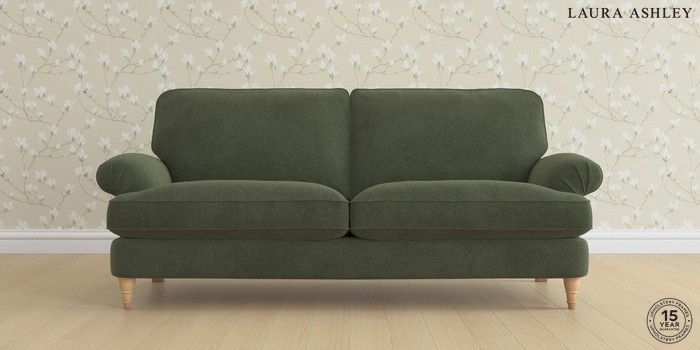 6.12.1 Buy Beaumaris by Laura Ashley 3 Seater Sofa Lundar Chenille Ivy Green Low Turned - Light Oak from the Laura Ashley online shop Click here to use our website with more accessibility support, for example screen readers