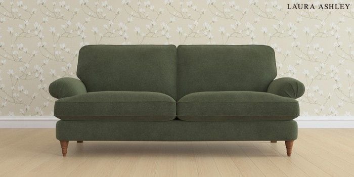 6.12.1 Buy Beaumaris by Laura Ashley 3 Seater Sofa Lundar Chenille Ivy Green Low Turned - Teak from the Laura Ashley online shop Click here to use our website with more accessibility support, for example screen readers