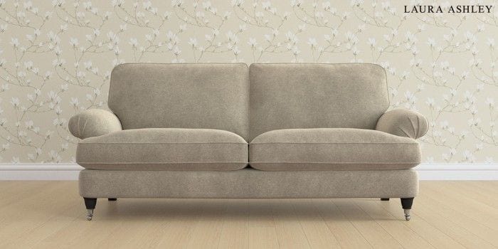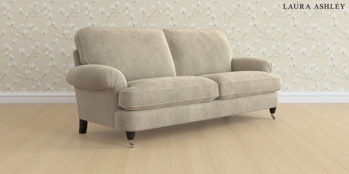6.12.1 Buy Beaumaris by Laura Ashley 3 Seater Sofa Lundar Chenille Truffle Natural Low Chrome Castor - Black from the Laura Ashley online shop Click here to use our website with more accessibility support, for example screen readers