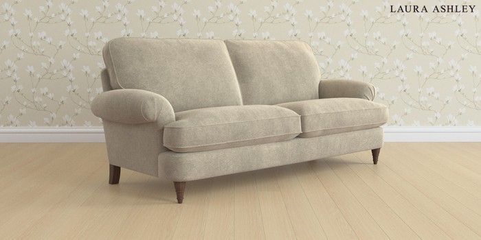 6.12.13 Buy Beaumaris by Laura Ashley 3 Seater Sofa Lundar Chenille Truffle Natural Low Turned - Chestnut from the Laura Ashley online shop Click here to use our website with more accessibility support, for example screen readers