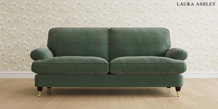 6.12.13 Buy Beaumaris by Laura Ashley 3 Seater Sofa Nantmor Fern Green Low Brass Castor - Chestnut from the Laura Ashley online shop Click here to use our website with more accessibility support, for example screen readers