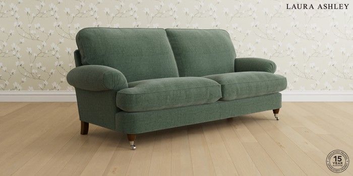 6.12.1 Buy Beaumaris by Laura Ashley 3 Seater Sofa Nantmor Fern Green Low Chrome Castor - Teak from the Laura Ashley online shop Click here to use our website with more accessibility support, for example screen readers