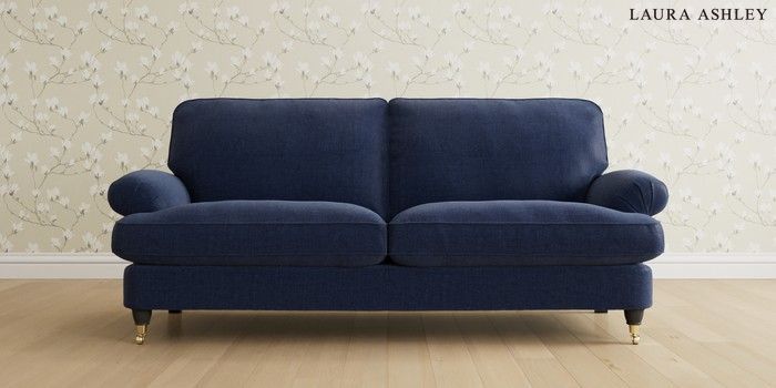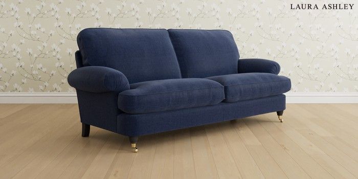 6.12.13 Buy Beaumaris by Laura Ashley 3 Seater Sofa Nantmor Midnight Navy Low Brass Castor - Black from the Laura Ashley online shop Click here to use our website with more accessibility support, for example screen readers