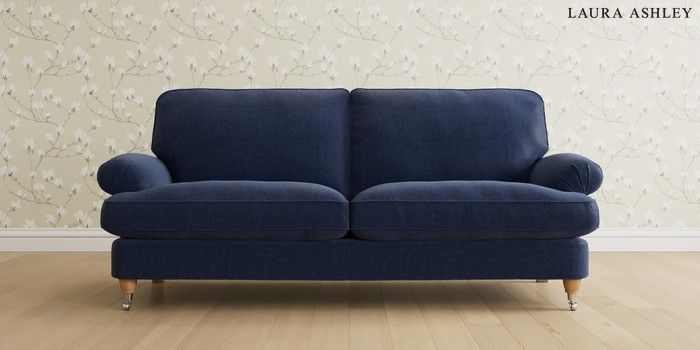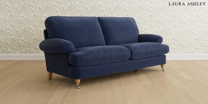 6.12.1 Buy Beaumaris by Laura Ashley 3 Seater Sofa Nantmor Midnight Navy Low Chrome Castor - Light Oak from the Laura Ashley online shop Click here to use our website with more accessibility support, for example screen readers
