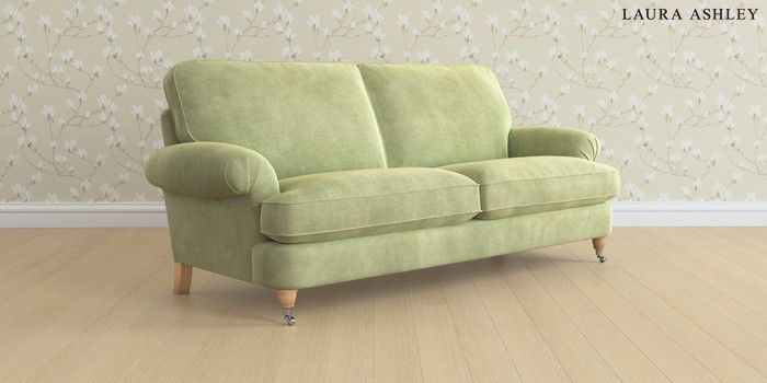 6.12.1 Buy Beaumaris by Laura Ashley 3 Seater Sofa Orla Pale Hedgerow Green Low Chrome Castor - Light Oak from the Laura Ashley online shop Click here to use our website with more accessibility support, for example screen readers