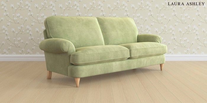 6.12.1 Buy Beaumaris by Laura Ashley 3 Seater Sofa Orla Pale Hedgerow Green Low Turned - Light Oak from the Laura Ashley online shop Click here to use our website with more accessibility support, for example screen readers
