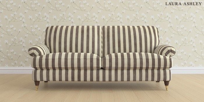 6.12.1 Buy Beaumaris by Laura Ashley 3 Seater Sofa Orla Stripe Dark Truffle Natural Low Brass Castor - Chestnut from the Laura Ashley online shop Click here to use our website with more accessibility support, for example screen readers