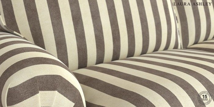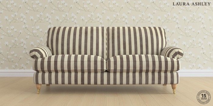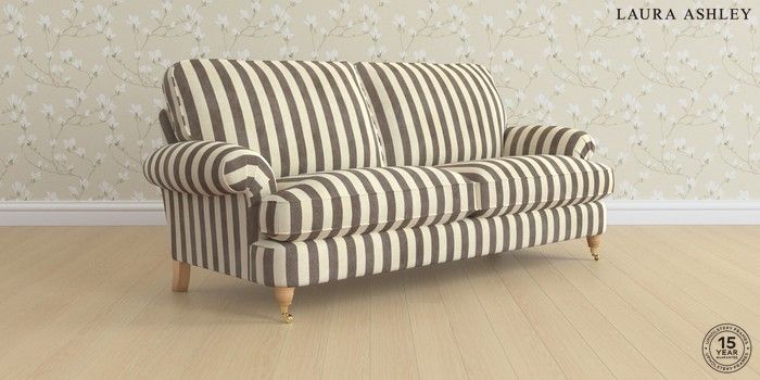 6.12.1 Buy Beaumaris by Laura Ashley 3 Seater Sofa Orla Stripe Dark Truffle Natural Low Brass Castor - Light Oak from the Laura Ashley online shop Click here to use our website with more accessibility support, for example screen readers