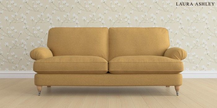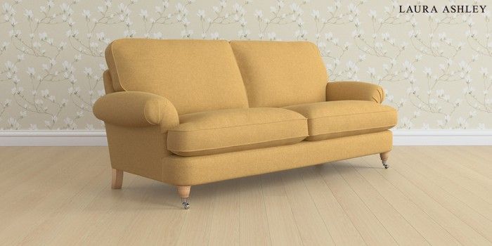 6.12.1 Buy Beaumaris by Laura Ashley 3 Seater Sofa Peyton Ochre Yellow Low Chrome Castor - Light Oak from the Laura Ashley online shop Click here to use our website with more accessibility support, for example screen readers