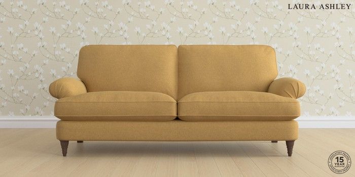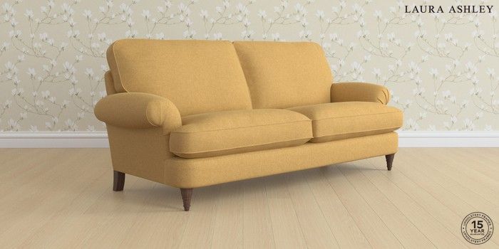 6.12.1 Buy Beaumaris by Laura Ashley 3 Seater Sofa Peyton Ochre Yellow Low Turned - Chestnut from the Laura Ashley online shop Click here to use our website with more accessibility support, for example screen readers