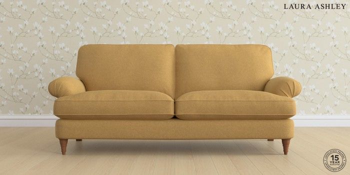 6.12.1 Buy Beaumaris by Laura Ashley 3 Seater Sofa Peyton Ochre Yellow Low Turned - Teak from the Laura Ashley online shop Click here to use our website with more accessibility support, for example screen readers