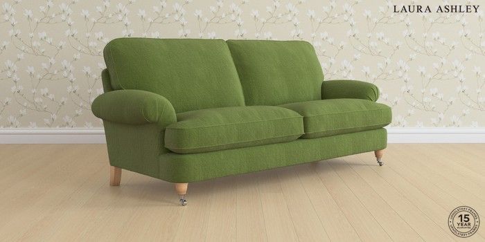 6.12.1 Buy Beaumaris by Laura Ashley 3 Seater Sofa Tichwell Olive Green Low Chrome Castor - Light Oak from the Laura Ashley online shop Click here to use our website with more accessibility support, for example screen readers