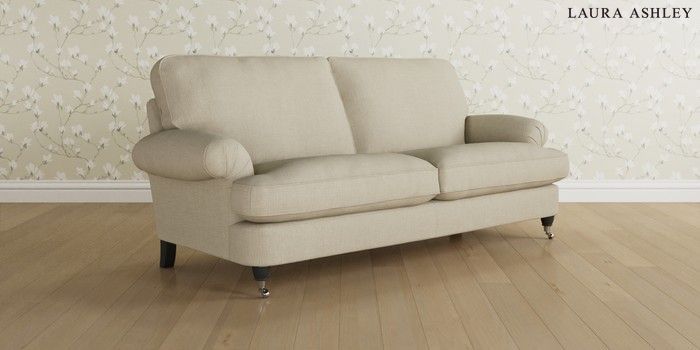 6.12.1 Buy Beaumaris by Laura Ashley 3 Seater Sofa Wooton Natural Low Chrome Castor - Black from the Laura Ashley online shop Click here to use our website with more accessibility support, for example screen readers