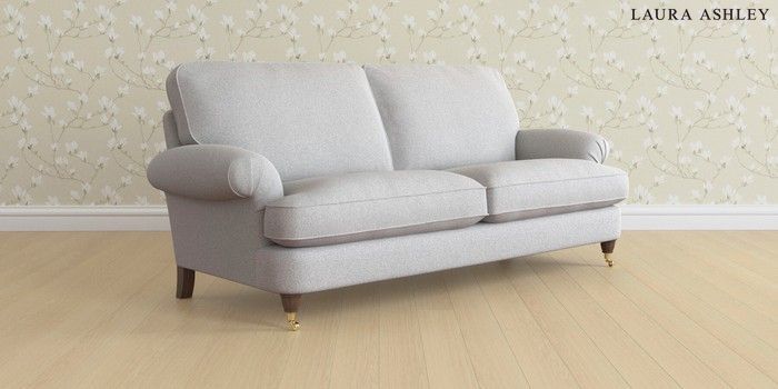 6.12.13 Buy Beaumaris by Laura Ashley 3 Seater Sofa Wooton Pale Steel Grey Low Brass Castor - Chestnut from the Laura Ashley online shop Click here to use our website with more accessibility support, for example screen readers