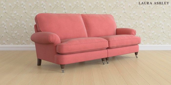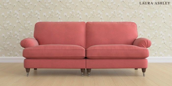 6.12.1 Buy Beaumaris by Laura Ashley 4 Seater Sofa Ailsworth Old Rose Pink Low Chrome Castor - Chestnut from the Laura Ashley online shop Click here to use our website with more accessibility support, for example screen readers