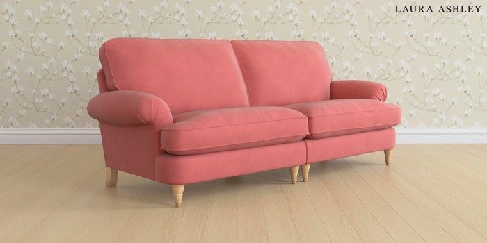 6.12.13 Buy Beaumaris by Laura Ashley 4 Seater Sofa Ailsworth Old Rose Pink Low Turned - Light Oak from the Laura Ashley online shop Click here to use our website with more accessibility support, for example screen readers
