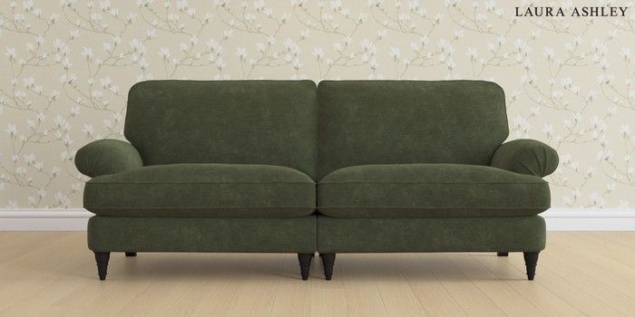 6.12.1 Buy Beaumaris by Laura Ashley 4 Seater Sofa Alwyn Velvet Ivy Green Low Turned - Black from the Laura Ashley online shop Click here to use our website with more accessibility support, for example screen readers