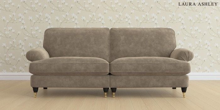 6.12.1 Buy Beaumaris by Laura Ashley 4 Seater Sofa Alwyn Velvet Truffle Natural Low Brass Castor - Black from the Laura Ashley online shop Click here to use our website with more accessibility support, for example screen readers