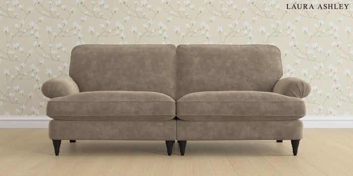 6.12.1 Buy Beaumaris by Laura Ashley 4 Seater Sofa Alwyn Velvet Truffle Natural Low Turned - Black from the Laura Ashley online shop Click here to use our website with more accessibility support, for example screen readers