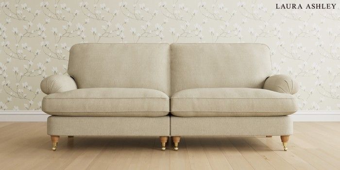 6.12.1 Buy Beaumaris by Laura Ashley 4 Seater Sofa Anneliese Natural Low Brass Castor - Light Oak from the Laura Ashley online shop Click here to use our website with more accessibility support, for example screen readers