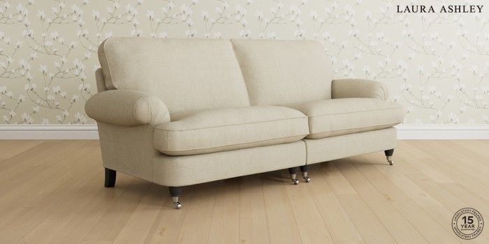 6.12.1 Buy Beaumaris by Laura Ashley 4 Seater Sofa Anneliese Natural Low Chrome Castor - Black from the Laura Ashley online shop Click here to use our website with more accessibility support, for example screen readers