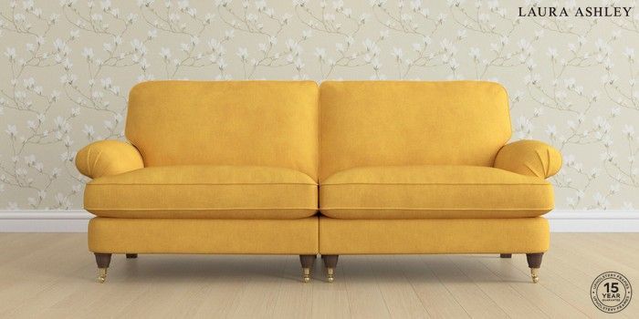 6.12.1 Buy Beaumaris by Laura Ashley 4 Seater Sofa Bainton Ochre Yellow Low Brass Castor - Chestnut from the Laura Ashley online shop Click here to use our website with more accessibility support, for example screen readers