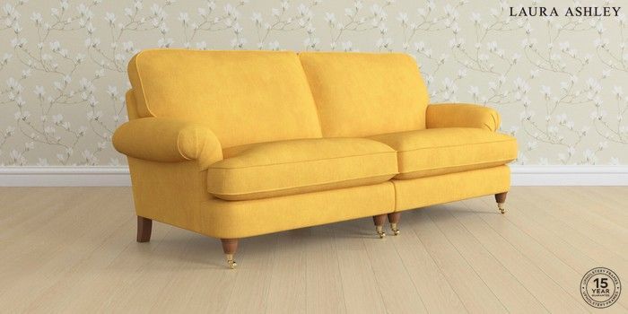 6.12.13 Buy Beaumaris by Laura Ashley 4 Seater Sofa Bainton Ochre Yellow Low Brass Castor - Teak from the Laura Ashley online shop Click here to use our website with more accessibility support, for example screen readers