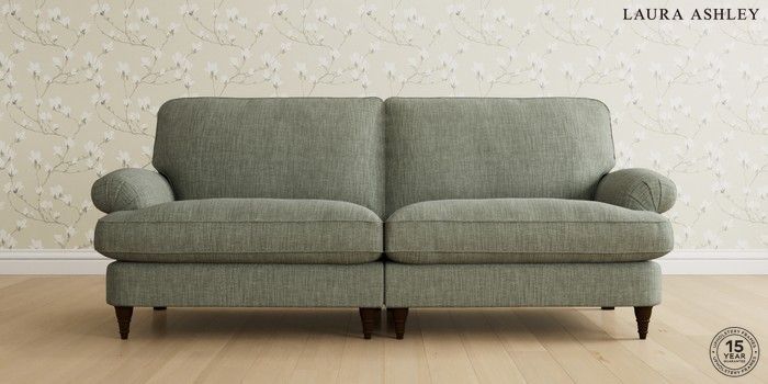 6.12.1 Buy Beaumaris by Laura Ashley 4 Seater Sofa Bainton Sage Green Low Turned - Chestnut from the Laura Ashley online shop Click here to use our website with more accessibility support, for example screen readers