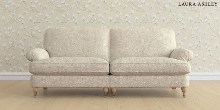 6.12.1 Buy Beaumaris by Laura Ashley 4 Seater Sofa Borwick Natural Low Chrome Castor - Light Oak from the Laura Ashley online shop Click here to use our website with more accessibility support, for example screen readers