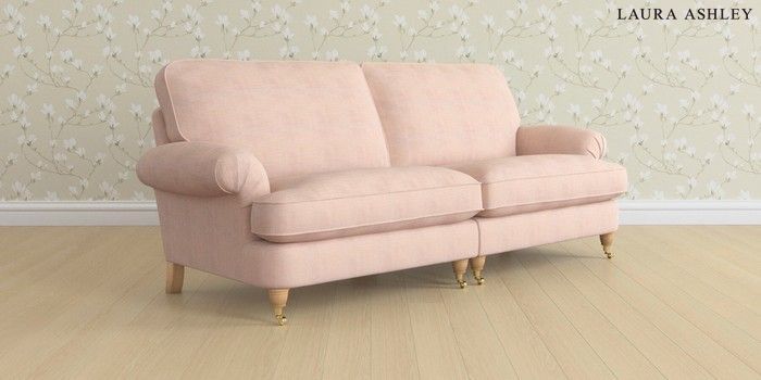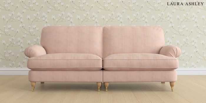 6.12.1 Buy Beaumaris by Laura Ashley 4 Seater Sofa Edwin Chenille Blush Pink Low Brass Castor - Light Oak from the Laura Ashley online shop Click here to use our website with more accessibility support, for example screen readers