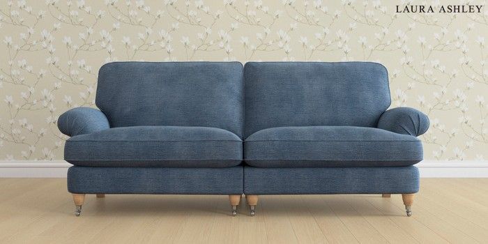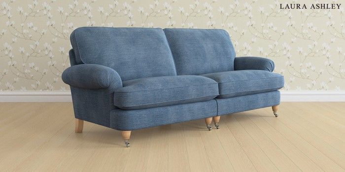6.12.13 Buy Beaumaris by Laura Ashley 4 Seater Sofa Edwin Chenille Seaspray Blue Low Chrome Castor - Light Oak from the Laura Ashley online shop Click here to use our website with more accessibility support, for example screen readers