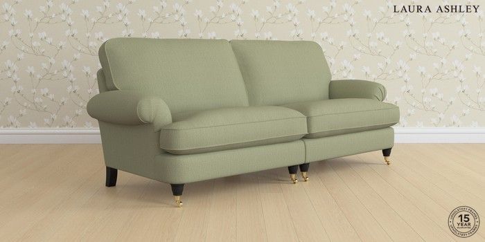 6.12.1 Buy Beaumaris by Laura Ashley 4 Seater Sofa Edwin Herringbone Hedgerow Green Low Brass Castor - Black from the Laura Ashley online shop Click here to use our website with more accessibility support, for example screen readers