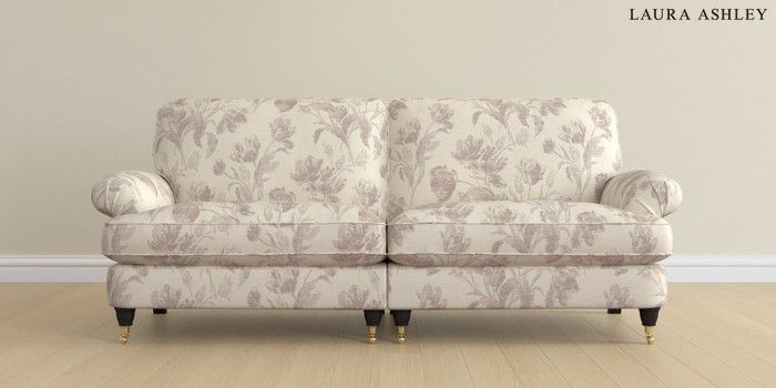 6.12.13 Buy Beaumaris by Laura Ashley 4 Seater Sofa Gosford Weave Dusky Plum Purple Low Brass Castor - Black from the Laura Ashley online shop Click here to use our website with more accessibility support, for example screen readers