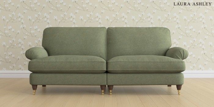 6.12.1 Buy Beaumaris by Laura Ashley 4 Seater Sofa Harley Moss Green Low Brass Castor - Chestnut from the Laura Ashley online shop Click here to use our website with more accessibility support, for example screen readers