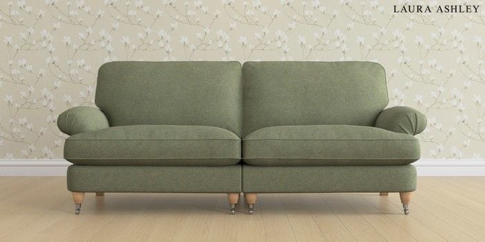 6.12.13 Buy Beaumaris by Laura Ashley 4 Seater Sofa Harley Moss Green Low Chrome Castor - Light Oak from the Laura Ashley online shop Click here to use our website with more accessibility support, for example screen readers